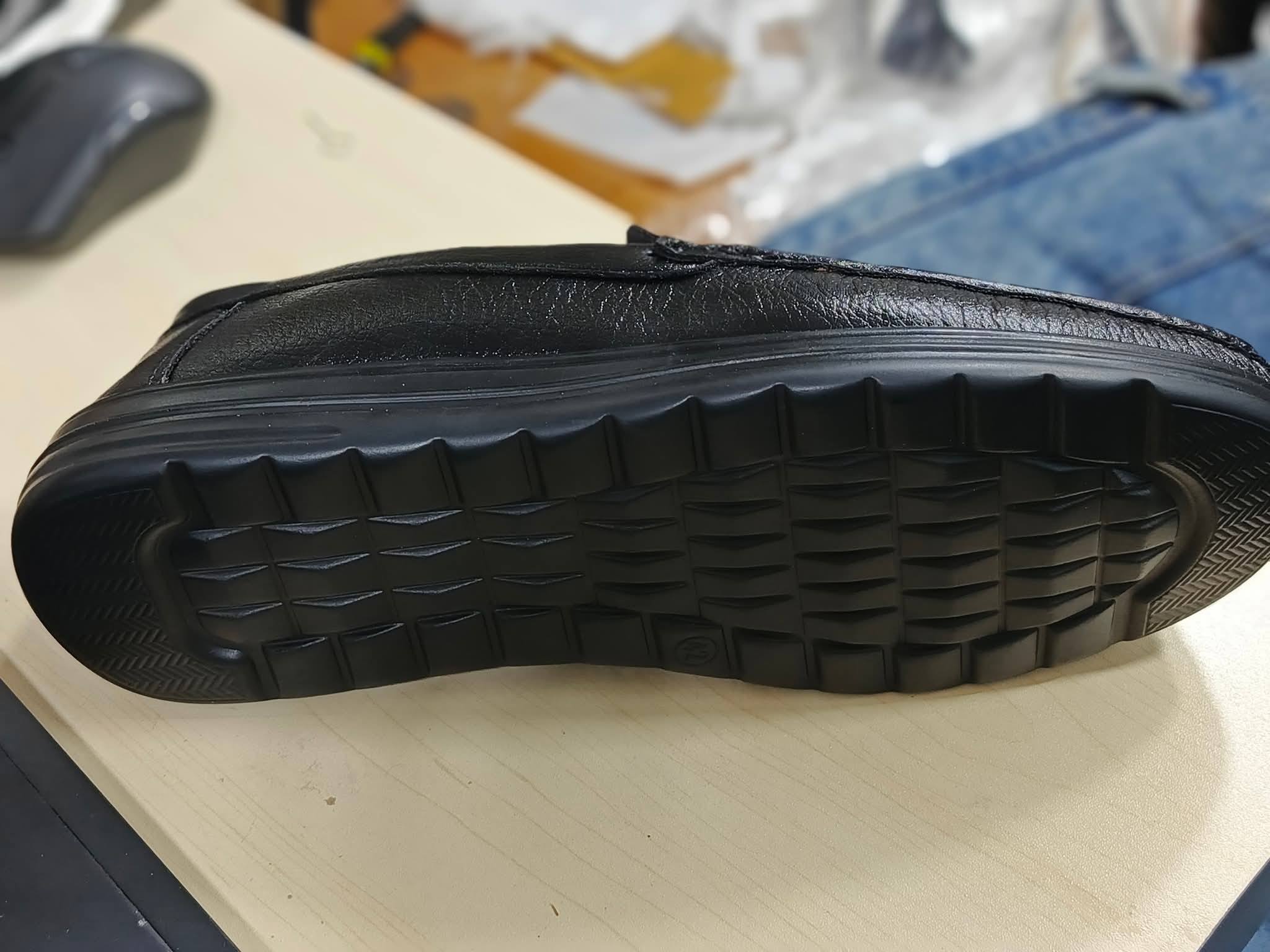 কালো রাবার সোল, যা গ্রিপ ভালো দেয় এবং পিছলে যাওয়ার ঝুঁকি কমায়।